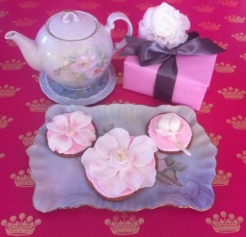 Our Southern Blossom Cookies are an elegant collection of dogwood flower, magnolia bloom, and cotton bole cookies. Made with our signature brown sugar cookie dough, the southern blossom cookies are frosted with our almond flavored royal icing and topped with our trademark blossoms created from gourmet fondant and our hand-spun candy floss.